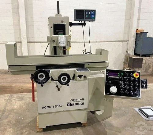 6" x 18", Okamoto ACC-6.18DX3, 8" x 1" Whl, 2HP, Auto-Feeds, Perm-mag Ck, 2004
