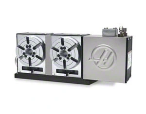 160 mm (6.3") Dual-Spindle Rotary Table, 10" (254 mm) center distance. Requires Haas mill with 4th-axis drive for full 4th-axis operation, or a rotary control box for stand-alone operation.