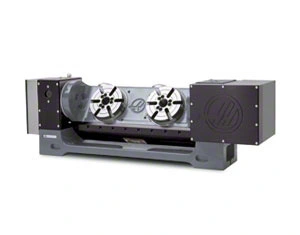 160 mm (6.3") Dual-Spindle Tilting 2-Axis Trunnion Rotary Table, with scale feedback on the A (tilting) axis. Requires Haas mill with 4th- and 5th-axis drives for true 4th- and 5th-axis operation. Scale feedback functional only on Haas mills with software version 18.xx or later. Scale feedback does not function with rotary control box.