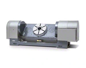 310 mm (12.2") Tilting 2-Axis Trunnion Rotary Table, with scale feedback on the A (tilting) axis. Requires Haas mill with 4th-and 5th-axis drives for true 4th- and 5th-axis operation. Scale feedback functional only on Haas mills with software version 18.xx or later. Scale feedback does not function with rotary control box.