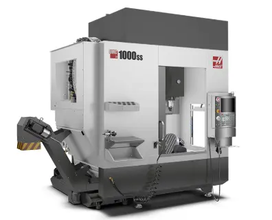 5-axis machining is an effective means to reduce setups and increase accuracy for multi-sided and complex parts. The larger travels and bigger platter of the Haas UMC-1000 Series Universal Machining Centers make them perfect solutions for 3+2 machining and simultaneous 5-axis machining of large parts. The UMC-1000SS is equipped with a faster spindle, high-speed tool changer, and high-speed trunnion table to reduce cycle times and boost productivity.