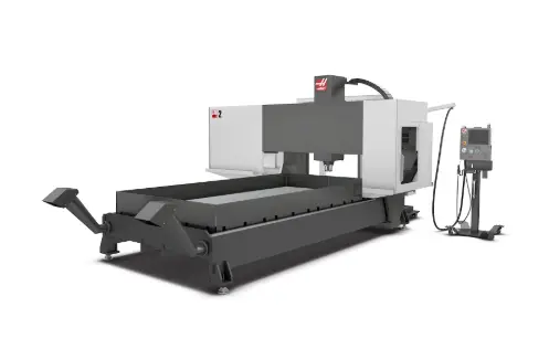 The GM-2 is a heavy-duty 3-axis gantry mill designed for large-part machining, such as airframe components, large plates, and long extrusions. The machine’s rigid steel construction provides a very stable cutting platform, and a 1" thick aluminum table is standard. A traveling guard protects the operator from chips and coolant, and keeps the workspace clean.