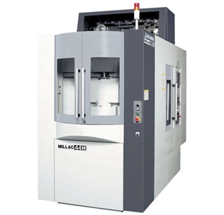The Okuma MILLAC 44H is a high speed horizontal machining center built for high performance production. It features an automatic tool changer with an impressive tool-to-tool time of 1.0 sec. and chip-to-chip time of 3.0 sec. Reduction of coupling inertia increases machine acceleration to 1.0G for a rapid traverse rate of 1,968 ipm. The machine’s small footprint makes it a suitable addition to even small shops that need high performance machining capability. Rigid box way construction without overhang creates exceptional stability for precision cuts at high speed and feed rates. Liquid cooled ball screws help reduce the effects of temperature on cutting accuracy.