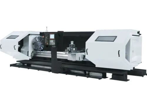 The POWER MASTER N Universal CNC Turning Center is designed for heavy duty cutting of large-diameter, long shaft work pieces. The machine features a flat-bed construction for easy access and chip flow.
