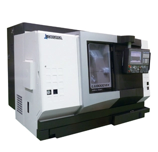 The LU3000 EX turning center is Okuma's latest evolution of 4-axis turning in the 8-10 inch chuck class. Two tools at work simultaneously provide process flexibility as well as high removal rates. The large work ranges of the upper (V12) and lower (V8) turrets mean less interference and more flexibility. The LU3000 EX has a 45-degree box bed with all box way construction, whichs provides optimum support for the carriage and cross slide. The three-point bearing support for the spindle means stability and long life for this very accurate spindle. The LU3000 EX is equipped with Okuma’s OSP P300 control. The one-screen “easy operation” feature on this control system, combined with the open architecture design make it suitable for operators of all levels.