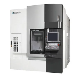 The MU-4000V 5-axis vertical machining center has a very large work envelope while maintaining the smallest foot print possible. The X-axis travel of 740mm allows for work on a maximum 500 mm part diameter. The B-axis trunnion is a fully supported design, with no overhanging mass. The MU-4000V weighs in at 9,700 kg, and its fully supported axes construction allows the machine to utilize a broad range of spindles, ranging from 12k to 25k rpm, to handle all complex shapes and hard-to-machine materials. The automation-friendly design allows for great operator accessibility when utilizing a 2 APC, Pallet Pool, or FMS system. ATCs can be configured to meet growing demands by 32-64 tool chain magazines to 64 plus matrix cabinets. In addition, the MU-4000V-L series handles turning functions up to 1,200 rpm, enabling complex turning and machining geometries on one machine.