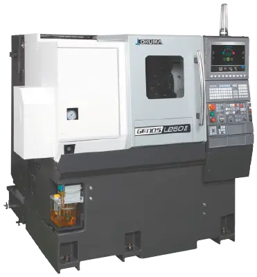 Our GENOS L250II is an affordable, entry-level lathe that is anything but basic. Built on a one-piece, cast iron base with a horizontal way system and hand-scraped headstock and tailstock mounting surfaces, this machine provides stability, rigidity, and accuracy for a variety of applications. Available in 6" and 8" chuck sizes and up to 18.5" of Z-axis travel, the GENOS L-250II CNC lathe takes up as little as 30 square feet of floor space—all while being highly productive and extremely affordable.